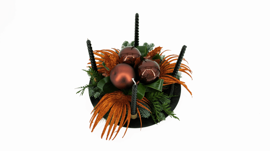 Als laatste is het tijd om de kaarsen te plaatsen. Je kunt kiezen voor kaarsen die qua kleur passen bij je decoratie, of juist voor een contrasterende tint om wat extra pit te geven. Denk aan warme roodtinten voor een klassieke uitstraling, of zachte zandkleuren voor een moderne, rustige look.