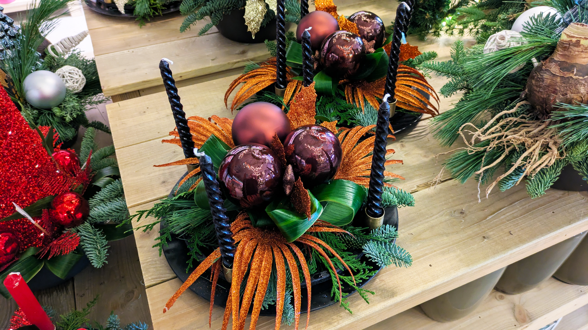 Heb je geen tijd om zelf aan de knutsel te gaan? Je kunt bij ons natuurlijk ook altijd een mooie krans of kerststuk komen uitzoeken, in de winkel of de webshop!